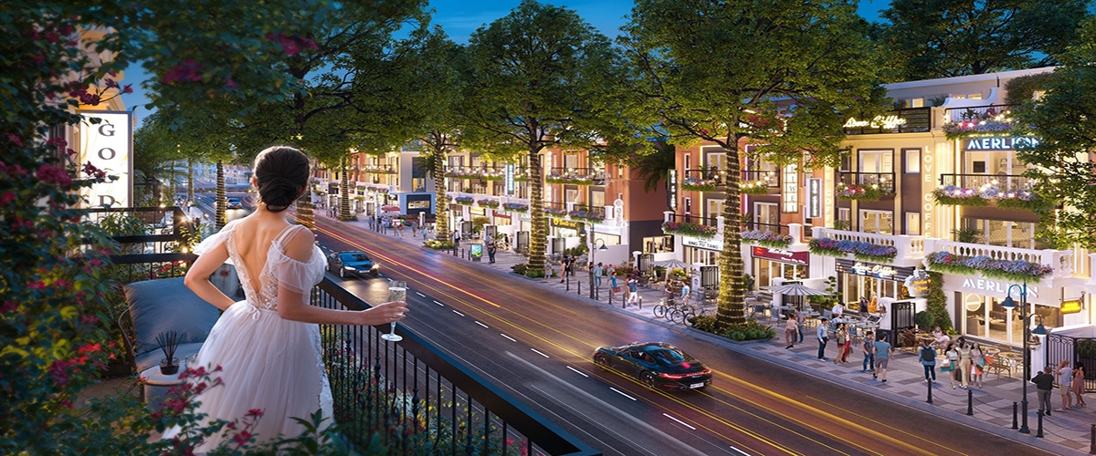 Các mặt ngoài của hai khối shophouse là Đại lộ Ánh sáng và dọc kênh Quang Minh thuận tiện kinh doanh, mặt trong là phố đi bộ, chợ đêm sầm uất. Shophouse hai mặt tiền nằm gần Đại lộ Ánh sáng, trung tâm thương mại với rạp chiếu phim, khu tập gym,... tạo nên khu thương mại liên hoàn đáp ứng trọn vẹn nhu cầu giải trí, giao thương sầm uất bậc nhất khu vực.